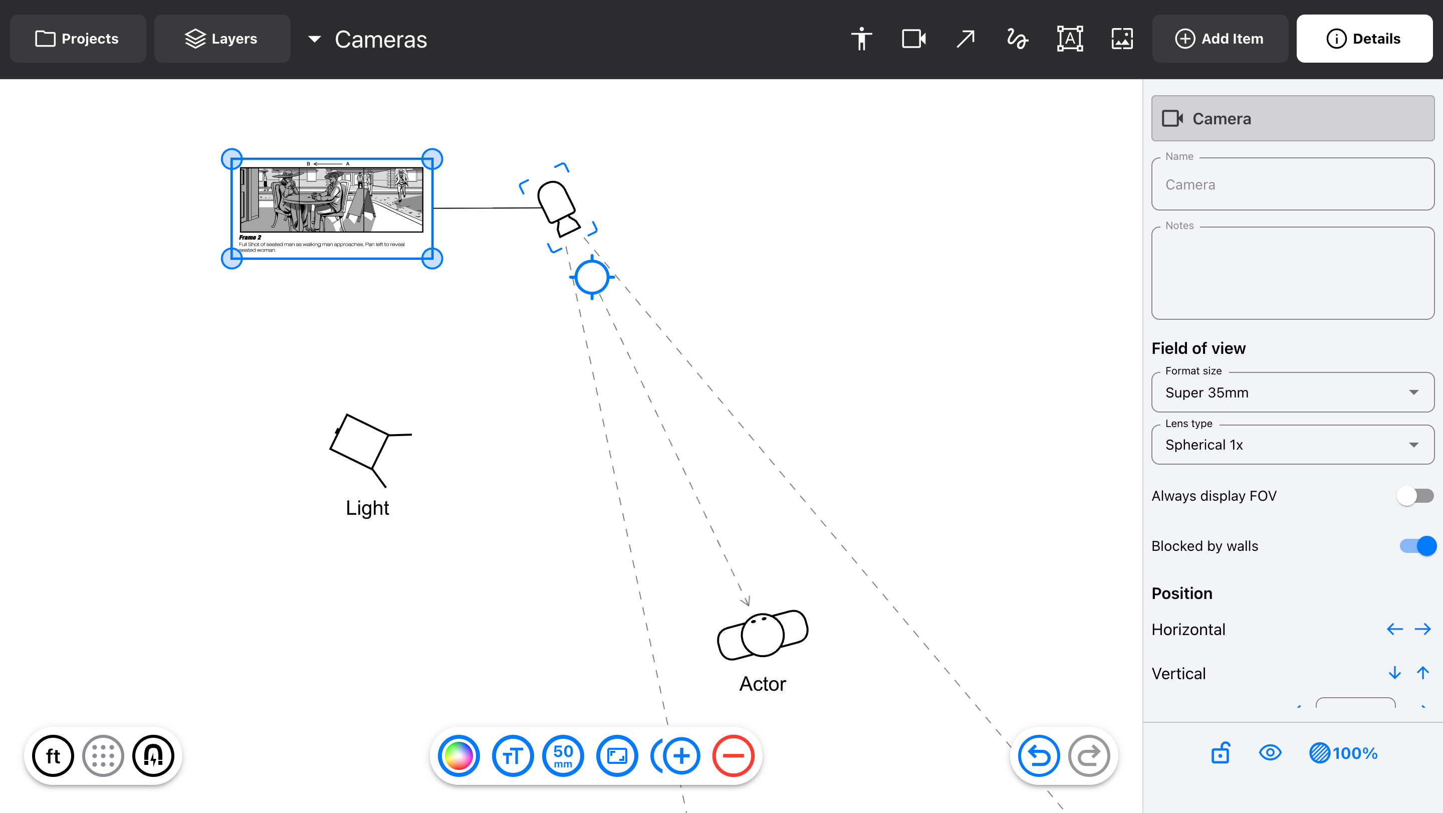 Like lenses, cams can apply to a whole Project, or an individual Diagram