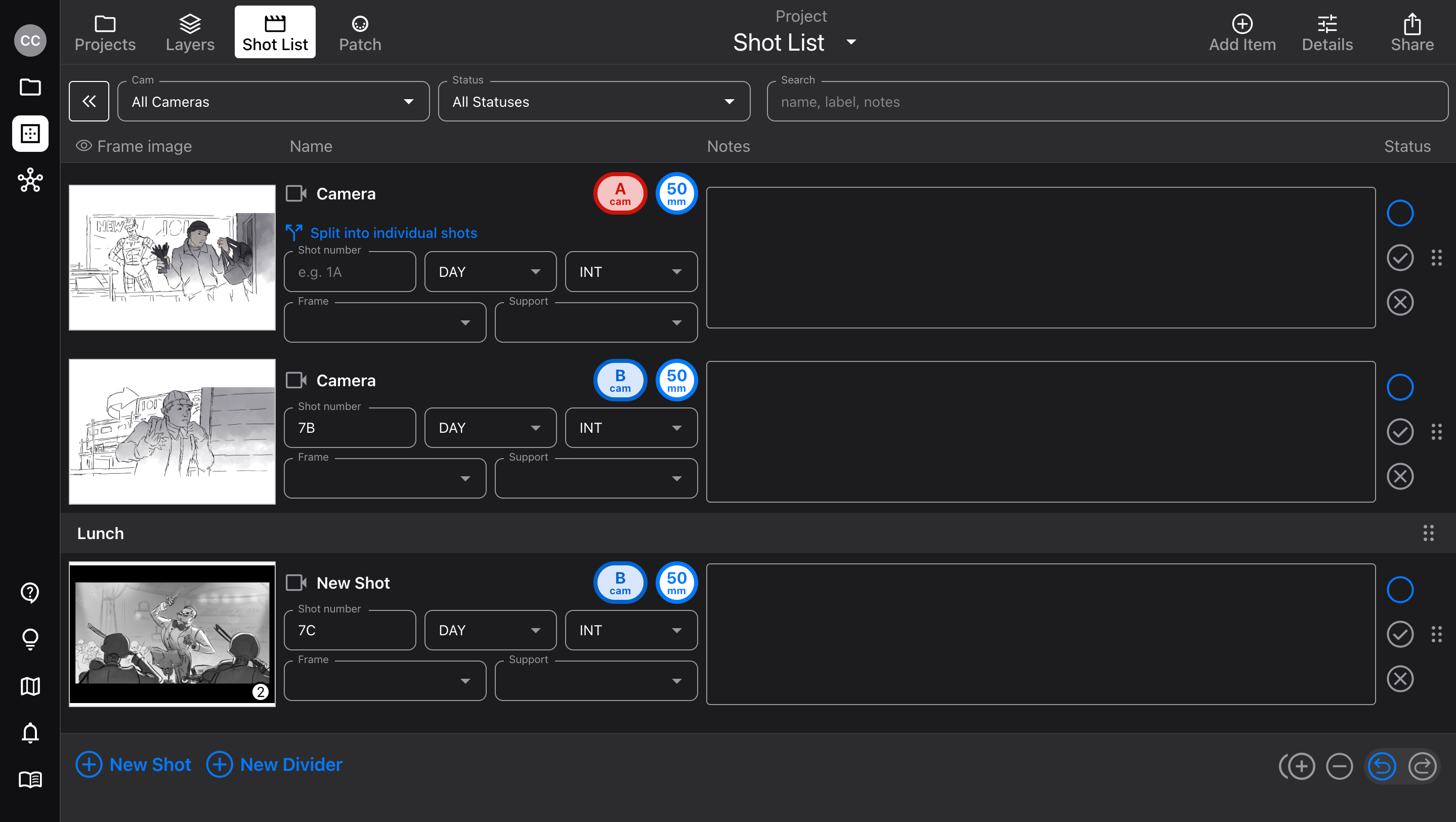 Keep track of shot status (To-Do, Done, Won’t Do)