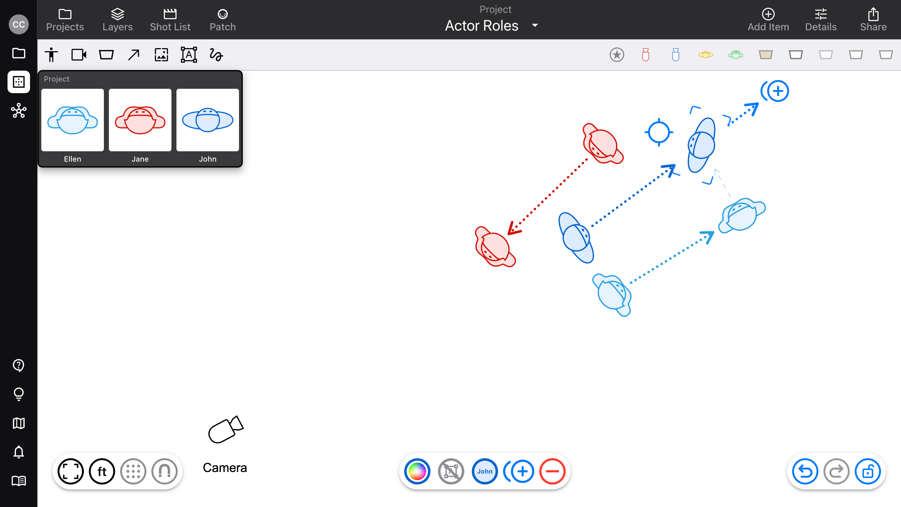 Just like the “cam” feature for cameras, “role” makes it easier to use recurring characters in a project or diagram.